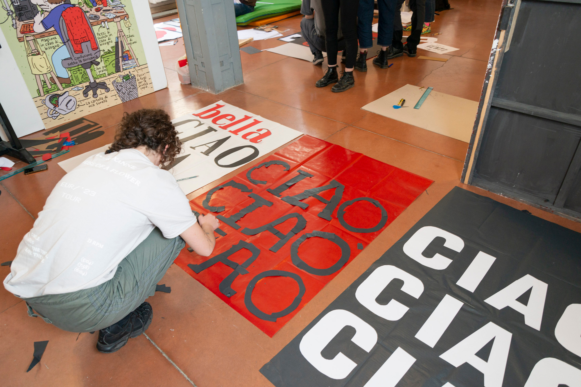 Con l’obiettivo di realizzare cinque opere dedicate alla Liberazione, il percorso laboratoriale ha guidato lə partecipantə attraverso tutte le fasi di progettazione: dall’elaborazione del concept al design, fino alla produzione, esplorando sia strumenti analogici sia processi digitali. I risultati del laboratorio — 5 manifesti 70x100cm, realizzati in scala 1:1 con la tecnica del collage — sono stati esposti presso l’Istituto Parri di Bologna in occasione del 25 aprile.